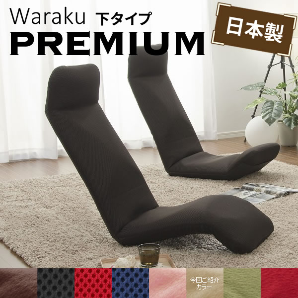 WARAKU 和楽 プレミアム 座椅子 下タイプ レッド(ダブルラッセル) コタツ座椅子 リクライニング座椅子 フロアチェア 日本製