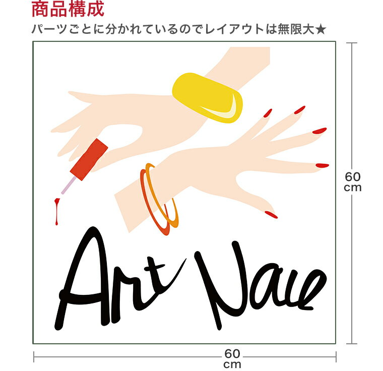 ウォールステッカー ネイルアート サロン 美容 ジェルネイル マニキュア ポリッシュ 60×60cm シール式 装飾 おしゃれ 壁紙 はがせる 剥がせる カッティングシート wall sticker 雑貨 DIY プチリフォーム パーティー イベント 賃貸