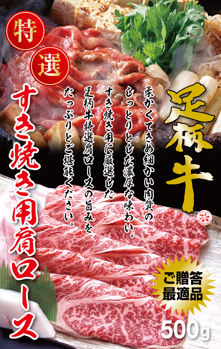 ▼【特選】足柄牛すき焼き用肩ロース500g▼ 肩ロースはサシ(霜降り)が程よく入っている柔らかい部位です。