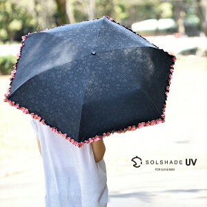 日傘 折りたたみ傘 完全遮光 UPF UVカット晴雨兼用傘 ブラック フリル ピンクベージュ レース 上品な色彩 大人カラー 国内ブランド solshade ソルシェード solshade_019